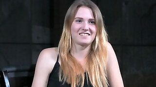 Slutty light-haired bint lets a strung up black dude have his way with her