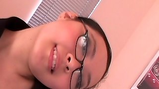 Sweetie with glasses facialized