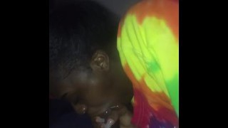 Midget gal sucks on gigantic ebony sausage