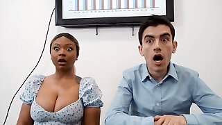 Big Tits Ebony Manager Candice Nicole Blackmail White Boy to Fuck her at Work