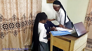 Naughty Students in Uniforms Offer Orgy to Upgrade Their Exams Score at the Principal Office.