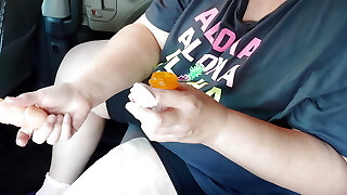 Big Ass Blonde With Immense Tits Caught Masturbating Publicly In Truck With Fucking Machine Outdoor