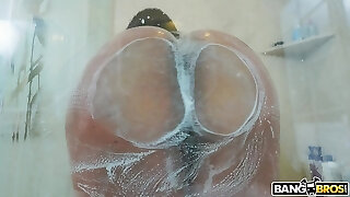 Perv watches Aryana Adin take a shower and fucks her sugary-sweet pussy