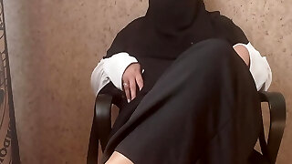 Syrian milf in hijab gives jerk off directions, jizm with her