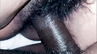 Hairy wet slit enjoying a black dick