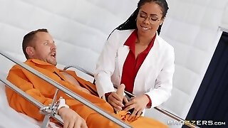 Horny and warm black doctor demonstrates her tits before patient fucks her mish