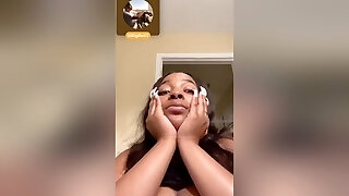 Super-fucking-hot thick ebony milf shaking her big boobs