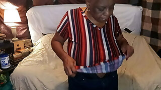 Aged Ebony Granny With Big Saggy Titties & Upskirt