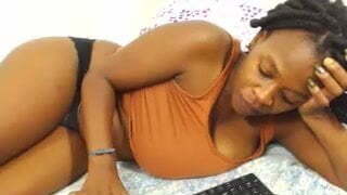 Super-fucking-hot thick ebony milf shaking her big boobs