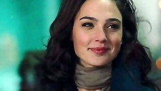 Gal Gadot outside at Christmas time.