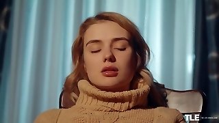 Towheaded woman in erotic, black stockings, Lucindais spreading up and rubbing her drenching wet pussy