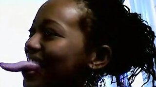 Damn! That black webcam babe has a very long tongue!
