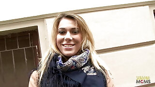 Nasty blonde cock teaser, Rebecca Black is gargling and riding dick during a casual threesome