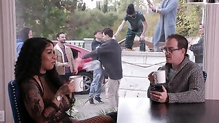 Hardcore interracial Dap gangbang makes slutty brunette Chanel Lux scream