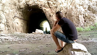 Dark-hued Girl in High Heels Fucks a White Guy in a Gloryhole