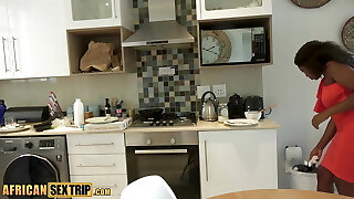 Big-chested Big Booty Ebony MILF Big Milky Dick Kitchen Fuck Cumshot