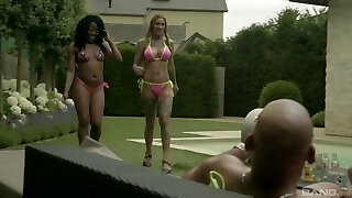 Charles Dera bangs black and ivory babes in the pool