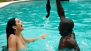 Naughty dark-hued babe gets nailed by White stud in indoor pool