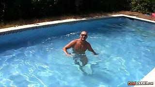 I get hard when I observe my mother-in-law semi naked in the pool pt2 we fuck, she rails my dick