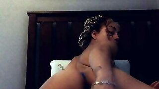 I plumb my stepdad in mom's bed and he gives me double creampie