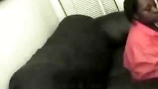Black lusty Milf with ugly fat button rides white monstrous cock in cowgirl pose