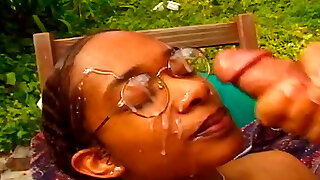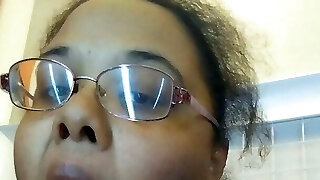 Ugly ebony dame in glasses gives a legendary deepthroat blowjob
