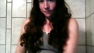 Lengthy haired black head with ugly saggy pale tits was stroking on webcam